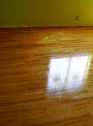 The room is nearly ready for move-in. I may or may not do a third coat of varnish. If not, then the floor will be ready for heavy usage on Wednesday. Need to stop by the Home Depot to pick up some temporary window shades.