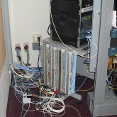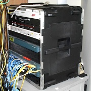 Cerritoes is in Verizon (formally GTE) area. The office, where they write the ads for the Yellow Pages, naturally had computers and a LAN. But since they were outside of PacBell and outside of PacBell area it was a contractor's LAN and Verizon wiring. Interesting. We've used the expression "LAN-in-a-box" to describe a small LAN. This literally was a LAN in a box. Top to bottom, some sort of power control, analog modem to contol power, a T1 DSU/CSU, a Cisco router and a pair of Cisco switches. With a pile of LAN cables plugged into the switches.