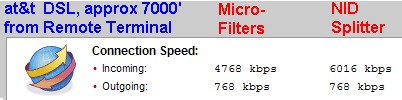 When I put the new DSL in I simply used the provided microfilters. I know where the RT is. I know where my B-Box is. I have somewhere around a 7K' loop which means I'm marginal for maximum speed. So I moved the DSL to the NID splitter: