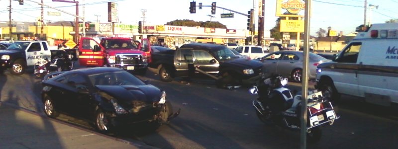 Missed the collision, I was shopping for supper. Car and pickup I should was another one of those "expecting people to stop for the red light." I assume the car had been moved from the intersection, judged by the path by dripping water. The pickup was probably still in it's original place as the right front hub was broke. No guess if it was a late pink light, a red on right, or what.