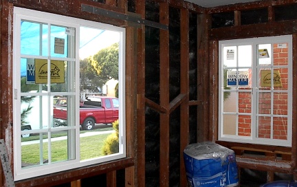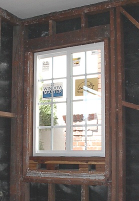 Sunday is a day of rest, so I worked only a little bit. The front window is being changed from a 64" x 40" to a 48" x 48"side slide. This will give me the required 20"+ x 40"+ fire escape route when used as a bedroom. It will also raise the bottom of the window from a mere 17 inches off the floor to a more reasonable 33 inches.