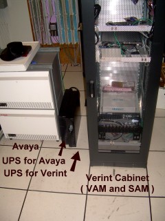 While I labeled the photo as VAN & SAM, seeing as the Verint cabinet is labeled and cabled for the SAM. Got a call from the designer -- nope! Can't allow that. The SAM, a simple little 2RU server, get to join the other servers in the Compaq cabinet, just out of the picture to the left of the Avaya.