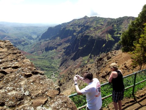 No "tour" today, no bus full of tourists. I rented a motorcycle, a SYM RV200 scooter, similar as my Vespa. Planned to go to the east side of Kaua'i to see a couple of waterfalls that tour bus wouldn't go to, but I got lost and ended up going to Waimea instead. Was going to go there anyhow, for whatever time I had left; just got to have more time for Waimea Canyon. The tourist bus stops at a big lookout and goes back to the coast: