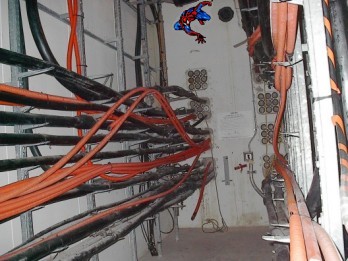 On the left you can see, near the ceiling, the many grey cables from